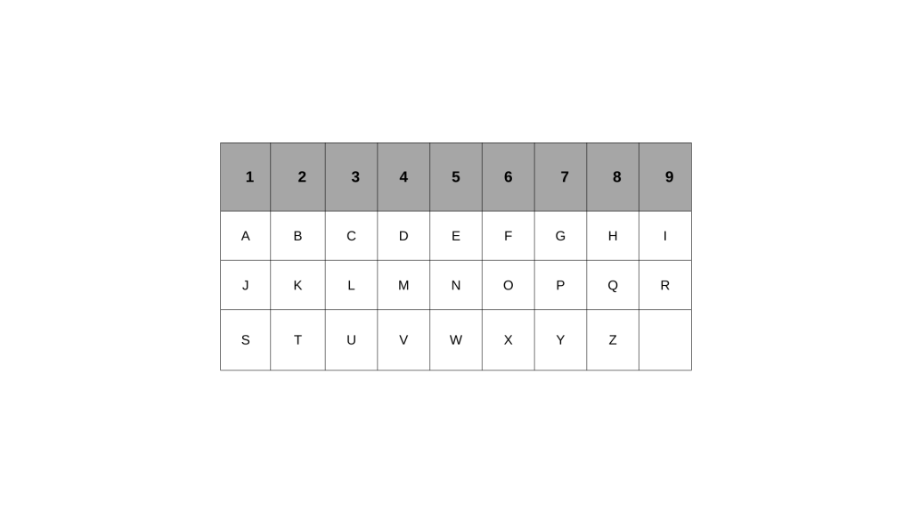 Na imagem seguinte exemplifico uma Tabela Pitagórica, na qual podes observar os números associados a cada letra.